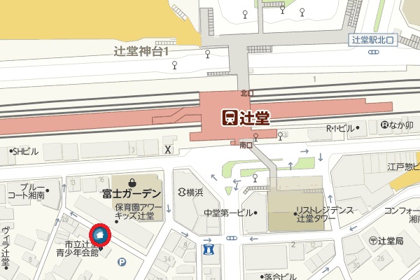 ■辻堂青少年会館は、JR辻堂駅南口より徒歩3分以内になります。